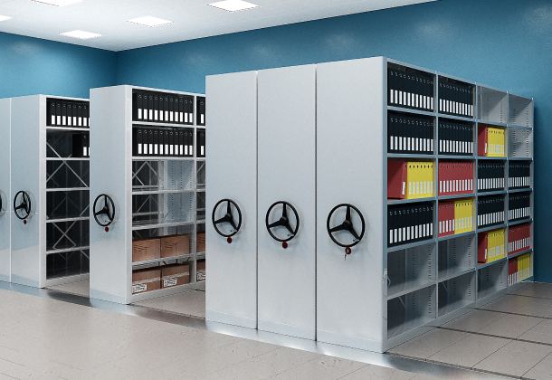 Передвижные стеллажи используются для хранения документов и товаров, применяются для оборудования различных помещений (архив, склад, библиотека).